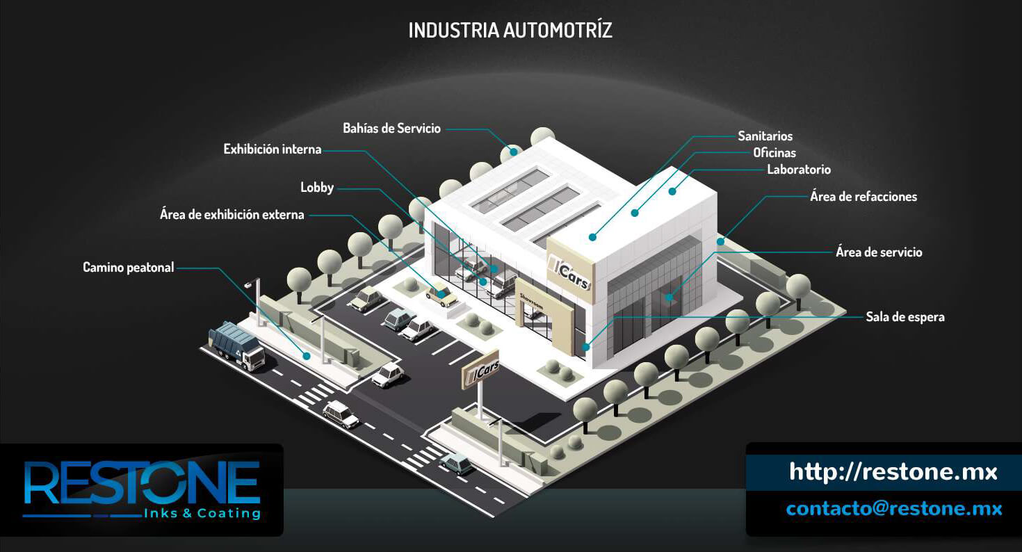 RESTONE, fabrica pisos de alto rendimiento para concesionarios de automóviles, talleres de reparación y detallado automotriz, áreas de lavado y más. Nuestros pisos a base de resina sin uniones son resistentes a químicos, manchas e impactos, a la vez que agregan seguridad con un revestimiento antideslizante. La forma cumple con la función cuando se trata de soluciones de piso para estos espacios, epóxico vertido y uretano. Los sistemas de pisos basados en una variedad de opciones de color brindan toda la durabilidad que necesitan las agencias de autos, con todas las opciones de diseño que requieren para su sala de exhibición.